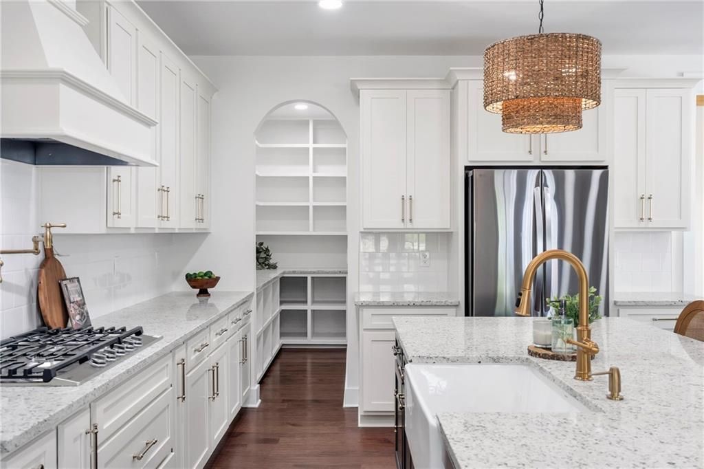 This thoughtfully designed 4-bedroom, 3.5 bath home offers a rare combination of smart space planning, elevated outdoor living and beautiful finishes across all three levels. The heart of the home is on the main floor, where a spacious open living and dining area provides an inviting, open space for gathering and entertaining. Natural light floods in through multiple sets of French doors that open to an elevated deck, creating a seamless indoor-outdoor lifestyle. The beautifully designed kitchen features a 36 stainless steel gas cooktop with five burners, a cabinet-matched hood, stainless steel wall oven with microwave above, and soft-close cabinetry throughout. A large walk-in pantry offers abundant storage, while the adjacent office/flex room provides the perfect private workspace. A powder room and inviting front porch complete this level. Upstairs, the layout is designed for comfort and privacy. The primary suite features a large walk-in closet and a well-appointed ensuite bath. Two additional bedrooms-each offering generous space and their own walk-in closets, with easy access to a full secondary bath. A conveniently located upper-level laundry room adds everyday practicality. The terrace level welcomes guests with a spacious guest suite/bonus room, complete with its own full bathroom and dual walk-in closets. This level also includes a dedicated laundry area, additional closet storage, and conveinient access to the oversized garage. Double doors lead to a large covered patio, making this level ideal for multigenerational living, and in-law suite, teen retreat, or private home office with its own outdoor entry. We have elevator options as well. Give us a call to learn more.These Single Family residences with only 16 available homesites and just a short walk to the downtown square are the only homes available at this price point with these finishes.