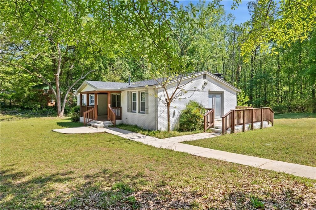 Renovated four-sided brick ranch set on a spacious lot with no HOA, offering the perfect blend of classic charm and modern updates. A welcoming covered front porch and side deck provide great outdoor living options, while the detached two-car garage offers excellent storage and flexibility. Inside, the open-concept layout features a formal living area that can easily serve as a dining room, flowing into the updated kitchen complete with a large island, stainless steel appliances, granite countertops, subway tile backsplash, and a convenient pot filler. The adjoining family room is anchored by a cozy brick fireplace and provides direct access to the side deck?ideal for entertaining or relaxing. The home includes a spacious laundry room and a thoughtfully designed layout with a primary suite featuring a walk-in shower. Three additional bedrooms and a second full bathroom offer plenty of room for family or guests, with both bathrooms showcasing new vanities and stylish tile finishes. The expansive lot provides endless possibilities to create your own outdoor retreat, all without HOA restrictions. Conveniently located near I-85 for an easy commute and close to Piedmont, schools, shopping, dining, and more, this home offers comfort, space, and accessibility in one inviting package.