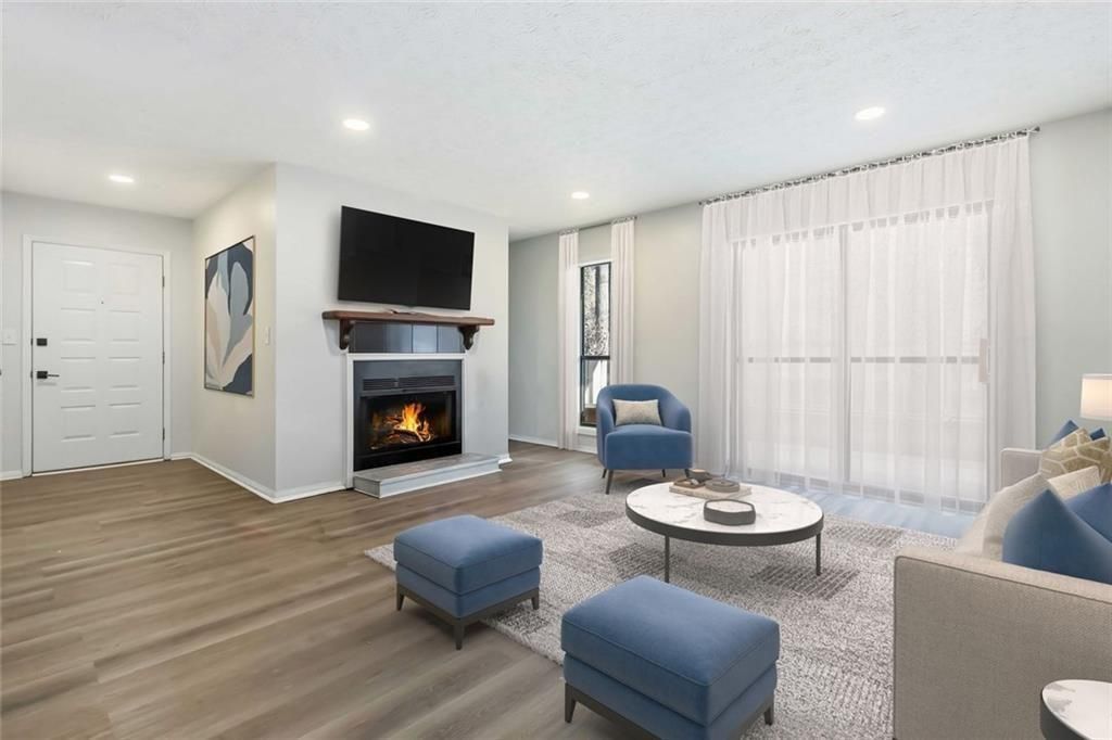 Now offering the best-priced unit of its kind in the neighborhood!Prepare to fall in love with this fully renovated, ground-floor condo offering a bright, open layout and modern finishes throughout. The home features brand-new flooring, two spacious bedrooms, and a fully updated bonus room that works perfectly as a private office, flex space, or additional storage.The main living area is filled with natural light and anchored by a sleek fireplace with a rustic wood mantel, creating a warm yet contemporary focal point. The kitchen is designed for both style and function, featuring white cabinetry, granite countertops, stainless steel appliances, and a seamless connection to the living space, ideal for everyday living and entertaining. Sliding glass doors lead to a private balcony, extending your living space outdoors and creating an easy indoor-outdoor flow. Recessed lighting and thoughtful upgrades throughout give the home a clean, modern feel.Enjoy convenient parking just steps from the unit, along with well-maintained community amenities including a swimming pool, tennis courts, and professionally kept grounds. The monthly HOA covers amenities, water, hazard and flood insurance, termite control, trash service, exterior and yard maintenance, providing true low-maintenance living.Ideally located near The Battery, Truist Park, I-75, GA-400, and Downtown Atlanta, with shopping and dining just minutes away. The community is FHA-approved with no rental restrictions, making this an excellent opportunity for both owner-occupants and investors. (Virtually staged)