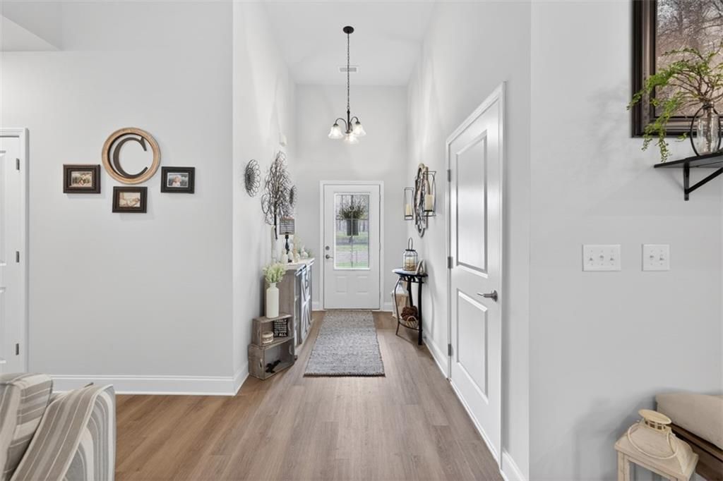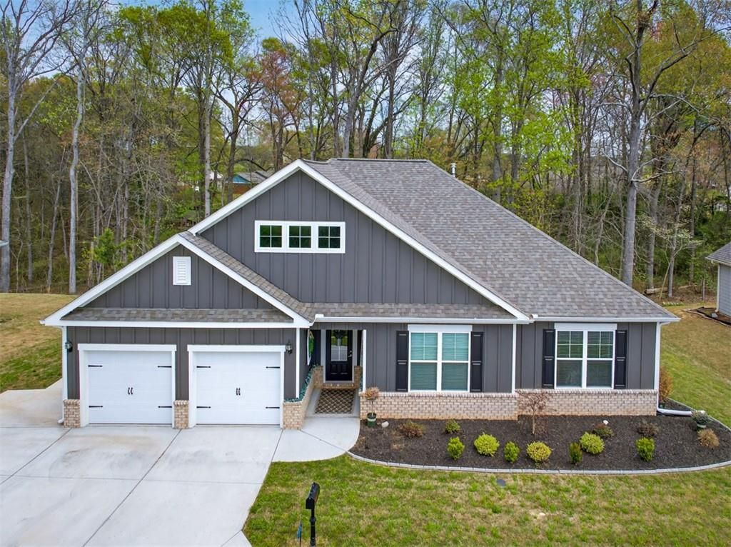 Skip the wait for new construction! This MOVE-IN ready Craftsman-style home puts you minutes from Lake Hartwell without lake front price. Located in the highly sought-after Bowers Estates community with NO HOA. Just minutes from Lake Hartwell, you'll enjoy the best of lake living: boating, relaxing weekends, and outdoor recreation without the premium price of waterfront property. ***3,000 toward closing cost with preferred lender. Inside, soaring ceilings in the foyer and living room create a bright, open feel that flows seamlessly into the kitchen and breakfast area?perfect for everyday living and entertaining. The expansive kitchen is truly the heart of the home, featuring beautiful granite countertops, abundant cabinetry with added custom pull-out shelving, a large island with additional seating, and upgraded stainless steel appliances including a GAS range, microwave, and dishwasher. Less than a year old, the current owners have thoughtfully upgraded every detail so you don't have to. An upgraded deep stainless sink with touch faucet and stylish pendant lighting complete the space. Enjoy peaceful mornings and relaxing evenings on the recently extended screened-in back porch overlooking a private, wooded backyard. An added concrete walkway leads to a charming storage building for added convenience. Additional highlights include: Luxury vinyl plank flooring throughout (no carpet!), Blinds on all windows, Upgraded lighting and ceiling fans throughout, Oversized laundry room with BRAND NEW washer and dryer to REMAIN with extra shelving. The Three secondary bedrooms are spacious with a double vanity hall bath. The oversized primary suite is a true retreat, filled with natural light featuring a tray ceiling, dual walk-in closets, and a spa-like bathroom with double granite vanities, an oversized tiled shower, and private water closet. A two-car garage with WiFi-enabled features PLUS extra parking for a boat or guests adds the finishing touch to this exceptional home. Ideally located, enjoy an easy walk to Lake Hartwell, just one mile to the nearest boat ramp, two miles to Hartwell Marina, and only a five-minute drive to the shopping and dining of Downtown Hartwell. This is lake living at its finest?schedule your showing today!
