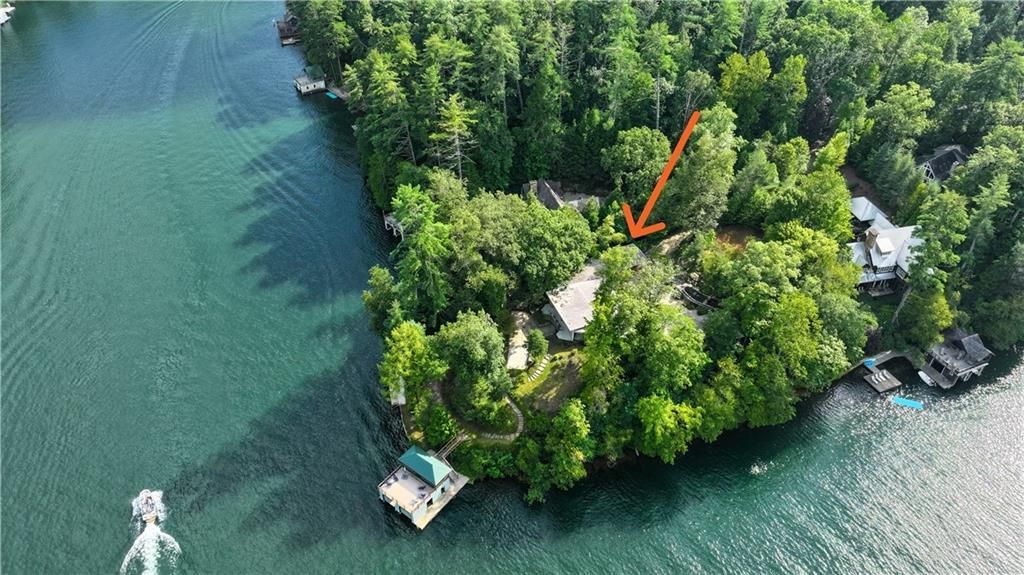 A RARE LAKE RABUN ESTATEOwn a remarkable piece of Lake Rabun's history with this extraordinary 1.36-acre lakefront property. Tucked away at the end of a private road, this one-of-a-kind estate boasts MORE THAN 406 FEET OF LAKEFRONT SHORELINE WRAPPING AROUND A DEEP-WATER PENNINSULA in one of the lake's largest basins.The original mid-century U-shaped brick ranch, designed and built in the late 1960s with local materials and craftsmanship, welcomes you with a stone-paved courtyard and enchanting raised rock garden. Inside, vaulted wood-beamed ceilings, locally milled paneling, handcrafted shelving, and a massive mountain-stone fireplace create timeless warmth. Walls of windows and oversized sliding doors capture sweeping panoramic lake views, opening to a covered wraparound patio with multiple seating areas. The kitchen?highlighted by its own brick-front cooking fireplace, handcrafted cabinetry with leaded glass, and expansive prep space?overlooks the lake.Accommodations include a main-level master suite with dressing room, a private-entry guest suite with lakeview deck, and a spacious one-bedroom terrace-level apartment with full kitchen, living room with fireplace, and walk-out patio. Additional spaces include a two-car carport with full bath and deck (designed for easy guest suite conversion) and a large heated workshop with water and electricity.Stone steps lead to the shoreline, where a 2010 double-decker, two-slip boat dock with lifts awaits. The upper level offers both screened and open sections with ceiling fans, TV mount, sun deck, and jump platform. The property also retains its original swim dock with rock steps into the lake. Georgia Power has previously approved plans for possible expansion of lake-level decking and swim docks, creating opportunity for even larger gatherings.Lovingly cared for through the decades, this property offers a rare combination of privacy, unmatched shoreline, and breathtaking views. Whether you choose to restore its mid-century character, update with modern luxury, or design a brand-new lakefront retreat, this estate represents an extraordinary opportunity on Lake Rabun. Known for its crystal-clear waters, majestic mountain backdrop, and warm, close-knit community, Lake Rabun is the perfect setting for a truly remarkable lakefront lifestyle. Agent is part owner. Sold As Is