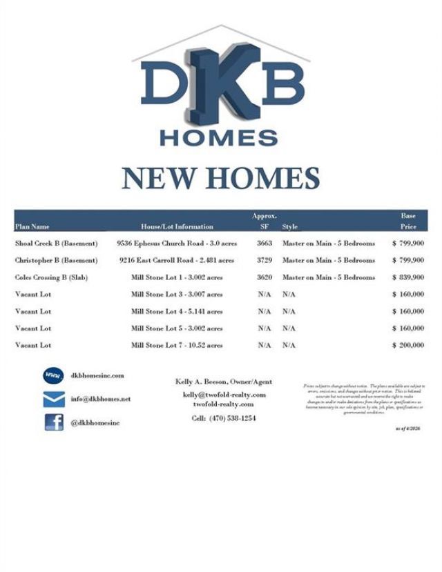 Great 3-acre residental lot located within the Carrollton city limit in the new Mill Stone subdivision. Enjoy the perfect blend of privacy and convenience with plenty of space for Bill Lindsay, Principal Owner of DKB Homes to build your dream home just minutes from shopping, dining and schools. Choose one of the thoughtfully designed DKB plans or bring your own!