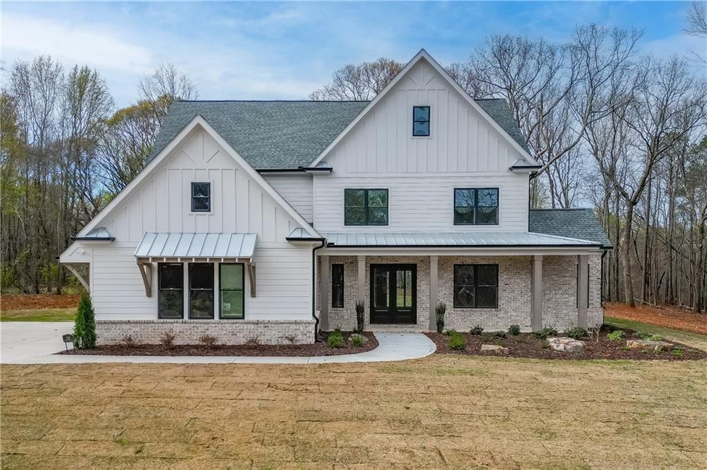 New custom-built farmhouse in a new community with large estate-sized lots ranging from 1.5 to over 4 acres in west Jackson County! This open concept master-on-the-main floorplan has a spacious open vaulted kitchen w/large work island, plenty of painted cabinetry, Quartz countertops, an island waterfall, large walk-in pantry with wood shelving, double ovens, and gas cooktop that flows into the family room with fireplace, sliding paneled glass door, and vaulted ceilings. Separate dining/breakfast area. Split-bedroom plan with a large master suite on main. Master bath with separate his and her vanities, HUGE tiled shower with dual showerheads, free-standing tub, plus an oversized walk-in closet with built-in shelving. Additional guest suite and private full bath on main level. Laundry room on main with cabinets above the washer/dryer and separate cabinet base sink. The split stairway with hardwood treads leads upstairs to three spacious secondary bedrooms featuring one private bath and another J-n-J bath with dual vanities, plus a separate loft or media room. Mud room off the 3-car side-entry garage. Vaulted covered rear porch with fireplace views the wooded private lot. 10' ceilings on the main with 8' tall doors, wide stairway with hardwood treads, hardwood floors on the main level except bedrooms and wet areas, full front porch...don't miss this one!