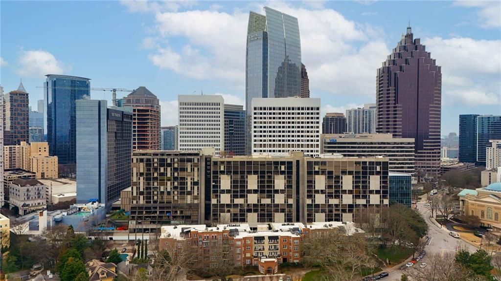 Stellar renovation meets timeless design in this exceptionally rare, oversized residence at Hanover House. This expansive one-bedroom plus den layout lives like a true home and is seldom available. Thoughtfully reimagined from top to bottom, the interiors feature wide-plank authentic hardwood floors, designer lighting by Rejuvenation, and floor-to-ceiling windows that flood the space with natural light and frame tranquil views toward Ansley Park. The fully renovated kitchen is both beautiful and functional, designed for serious cooks and effortless entertaining. White concrete countertops, custom cabinetry, subway tile extended to the ceiling, European-style floating shelves, Bosch stainless steel appliances, an induction cooktop, ceramic floors, and a convenient secondary hallway entry eliminate the feel of a closed-off kitchen. A full-size washer and dryer are discreetly tucked within the space.The gracious living and dining areas easily accommodate gatherings of twelve or more, while a separate den provides the perfect work-from-home office, media room, or guest retreat with access to a private bath. The oversized primary suite offers a serene escape, complemented by a spa-like bathroom featuring Carrara marble double vanities and floors, frameless glass shower, subway tile throughout, and a towel warmer.Additional highlights include a covered parking space and a temperature-controlled storage unit. Hanover House offers true full-service living with 24/7 professional concierge, security, controlled access garage, and utilities included in the association fee?electricity, heating and air conditioning, water, internet, and cable. Rentals and pets are not permitted, preserving the building's quiet, owner-occupied atmosphere.Steps from MARTA, Piedmont Park, the Woodruff Arts Center, Atlanta Symphony Orchestra, High Museum, Botanical Garden, Winn Park, and Colony Square's acclaimed dining and entertainment?including Rumi's Kitchen, Holman & Finch, and IPIC Theater?this is city living at its most refined. A truly quintessential home, offering scale, quality, and location rarely found in Midtown.