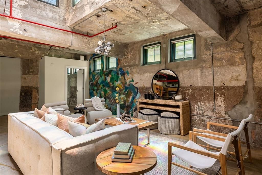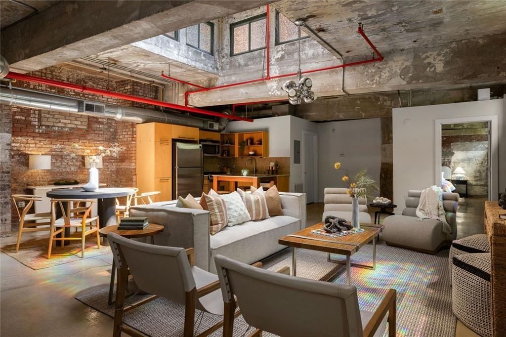 Tucked beneath the iconic water tower in The Stacks, this one of a kind loft delivers a living experience that feels both creative and connected. With its own private entrance and a setting that instantly sets it apart, this is the kind of home that captures attention and keeps it. Inside, the space opens wide into a true loft layout where kitchen, dining, and living flow effortlessly together, framed by exposed brick, concrete walls, and industrial details that give it that unmistakable character. Natural light pours in through multiple skylights, highlighting a custom mural by a local Atlanta artist and creating a vibe that feels equal parts art studio and city retreat. A dedicated entry space offers flexibility for a work from home setup or gym, while the overall layout gives you room to live, host, and unwind with ease. The primary suite feels like its own escape with space for a seating area, a generous walk-in closet, and room to truly spread out. A spacious secondary bedroom and full bath make the layout ideal for guests, roommates, or a second workspace. Beyond your front door, the lifestyle only gets better. Residents enjoy access to a resort style pool, fully equipped fitness center, rooftop patio with skyline views, pet run just outside your front door and thoughtfully designed greenspace, all within a gated community with two dedicated parking spaces. Step outside and you are right in the middle of some of Atlanta's most loved neighborhoods. Spend weekends wandering through Cabbagetown and Reynoldstown, grabbing breakfast at Carroll St Cafe, meeting friends for dinner and drinks at Breaker Breaker, playing Mahjong at JenChan's or hopping onto the Atlanta BeltLine for an easy stroll or bike ride. With quick access to MARTA, the best of the city is always within reach. This is loft living with personality, history, and a location that makes every day feel a little more connected