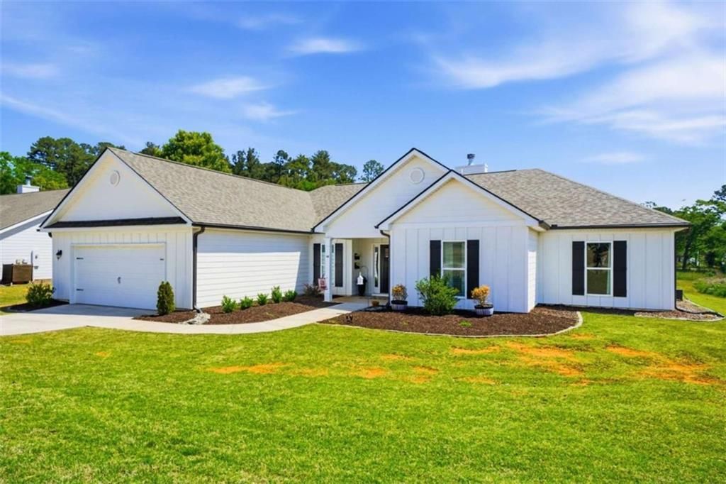 Beautiful ranch home situated on a spacious three-quarter acre lot featuring 4 bedrooms and 2.5 baths. This thoughtfully designed home offers an open floor plan with a vaulted great room that flows seamlessly into the spacious kitchen, complete with a huge island and breakfast room overlooking the backyard and covered back patio.The private master suite features vaulted ceilings and a luxurious bath with a soaking tub, separate shower, and double vanities. A split-bedroom plan provides added privacy, while the large mudroom/office area with a half bath and walk-in pantry adds everyday convenience.This home is loaded with upgrades, including LVP flooring throughout the main living areas, stainless steel appliances, and granite countertops!