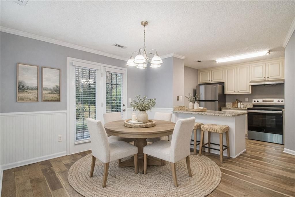 This inviting end-unit townhome offers the perfect blend of comfort, privacy, and space. The main level features beautiful LVP flooring throughout (no carpet anywhere!) and a spacious living room that flows seamlessly into the dining area and kitchen, ideal for both relaxing and entertaining. A convenient half bath is also located downstairs. Step out from the dining room to your private patio and enjoy a cozy backyard atmosphere.Upstairs, you'll find a desirable roommate-style layout with two generous bedrooms, each with its own walk-in closet and en-suite bathroom. Perfect location, close to shops and many stores! Schedule your showing today!This property qualifies for up to $11,500 in down payment and closing cost assistance from Move Home Lending!
