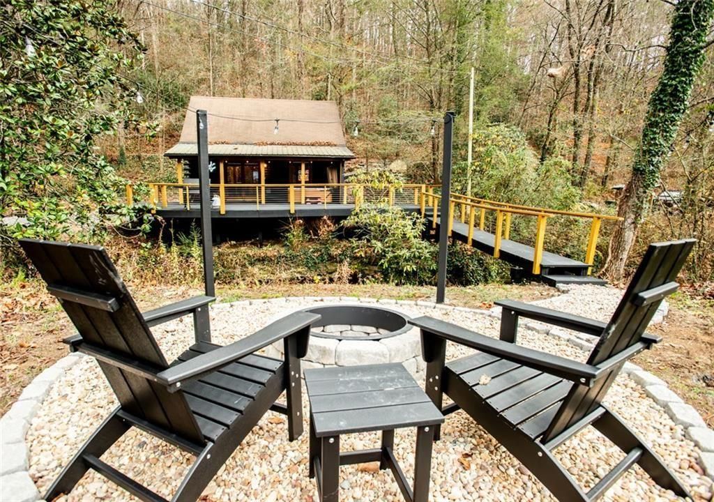 Welcome to this rare creekside gem?an exceptional investment opportunity grossing nearly $60,000 annually as a short-term rental. This fully renovated cabin is being sold completely furnished and turnkey, making it effortless for the next owner to step in and start generating income immediately.Inside, the home has been thoughtfully updated with modern finishes while maintaining its cozy mountain charm. The kitchen features stainless steel appliances, elegant quartz countertops, and custom solid oak shelving for a warm, upscale touch. The bathroom has been beautifully redesigned with a sleek frameless glass shower and a contemporary vanity topped with quartz.The inviting living space is anchored by a new Lopi gas stove. A separate TV room offers the perfect place to unwind, complete with a comfortable leather couch. Upstairs, the loft bedroom showcases stylish cable railing for a modern, open feel.Step outside and experience what truly sets this property apart?an incredible outdoor retreat featuring a peaceful creek, pond, hot tub, and fire pit area. The lot adjacent is also included in the sale which keeps a privacy buffer or perhaps future improvements! Owner is licensed Real Estate Agent Lic#362773
