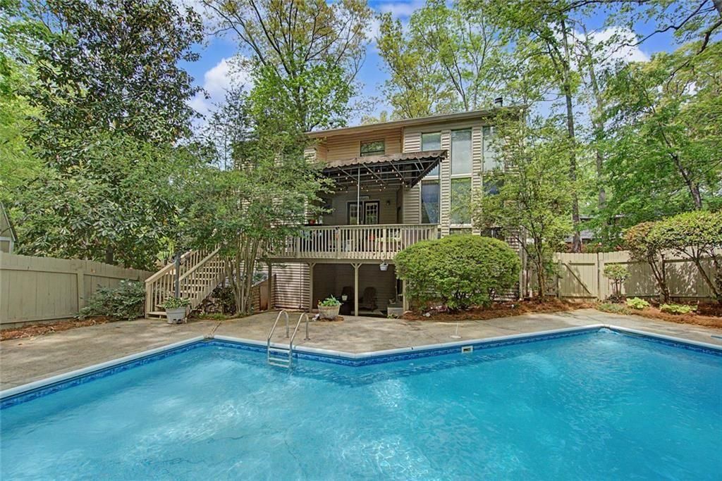 A rare opportunity to own a truly distinctive contemporary retreat in the heart of East Cobb. Designed and built by Tom Mozen, a local builder known for his bold, one-of-a-kind designs, this home stands apart in the very first neighborhood he developed?offering character and individuality rarely found in today's market. Located in the award-winning Pope High School district and just a 5-minute walk to the school, with Hightower Middle and Shallowford Elementary nearby, the location combines convenience with top-tier schools. Freshly painted and filled with natural light, the home features hardwood and tile flooring throughout and a layout designed for both everyday living and entertaining. The spacious family room with fireplace and dramatic wall of windows creates a bright, inviting gathering space, flowing into the breakfast area and kitchen with granite countertops and stainless steel appliances. From the breakfast area, step directly onto the covered deck overlooking the private pool?perfect for relaxing or hosting. A formal dining room adds space for gatherings, while upstairs the primary suite offers a private retreat with its own deck. Two secondary bedrooms share a hall bath. The terrace level provides a large den, media, or game room with a full bath, opening to a patio that leads to the pool?ideal for a teen suite, guest space, or casual entertaining. Offering a rare combination of architectural character, natural light, and functional flow, this home is ideal if you're seeking a truly unique retreat in East Cobb.
