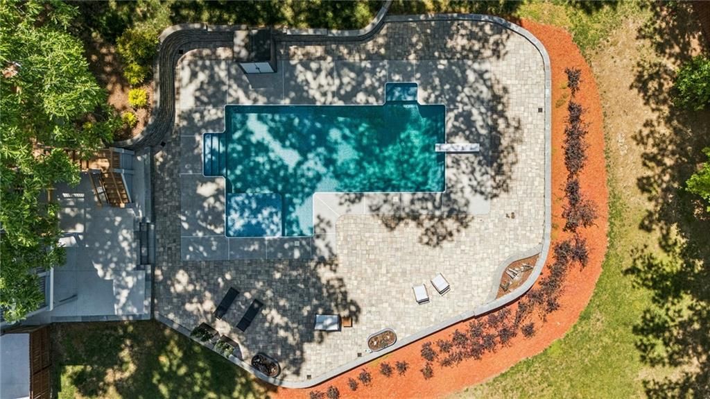 Welcome home to refined resort living, where thoughtful design meets effortless functionality. A covered front porch, right out of Southern Living, leads into a sun-soaked interior with an impressive two-story open floor plan complete with vaulted ceilings, exposed red oak beams and a kitchen to make your entertainer's heart skip a beat.Featuring Bosch stainless steel appliances, quartz countertops, double ovens, a large island with seating, and a custom walnut bar, the kitchen is designed for hosting family and friends. Overlooking the living and dining with soaring ceilings, the home feels both grand and comfortable all at the same time. The main level includes two spacious bedrooms, one with access to a covered deck, along with two full bathrooms featuring built-in Bluetooth speakers. Upstairs features a loft and bonus laundry closet leading to the primary suite with vaulted ceilings, private covered deck, and a spa-like primary bath. The soaking tub, double vanity, custom closet, and large, tiled shower with multiple shower heads make waking up a delight. The fully finished basement provides excellent flexibility for customization with additional living space, a bedroom, full bath, laundry, a gym, and a stove connection. This space is ideal for an in-law suite, separate apartment, home office, or teen quarters. The backyard is designed for both entertaining and relaxation, complete with a heated in-ground pool, oh so much patio space, a fire pit, storage sheds and a fully fenced yard with ample green space for kids, pets, and yard games.The home is truly move-in ready. The sellers did the heavy lifting with features including 2 new water heaters, new pool liner, waterproofed basement, newer AC units, hookups for outdoor kitchen, hot tub, and basement kitchenette. Plenty of room on the property to add a garage as well!This resort-like home, located in the coveted Lassiter High district, is minutes from downtown Roswell and downtown Woodstock, walking distance to restaurants, and has easy access to parks, shopping, and dining. Welcome home to luxury living on Easy Circle.
