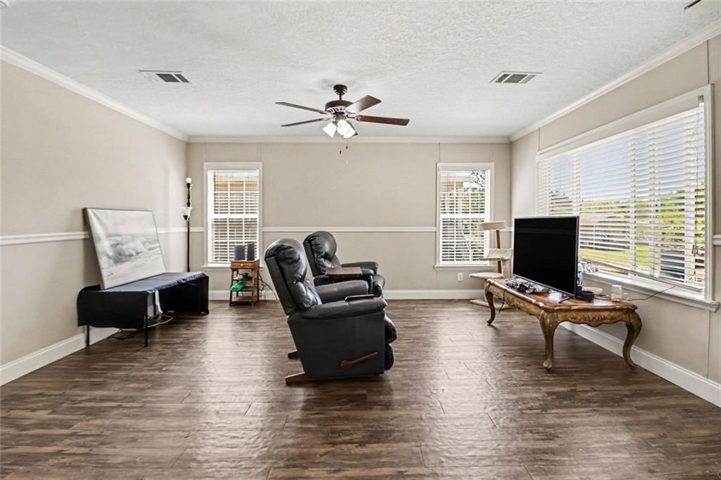 Beautiful and well-maintained 2 bedroom, 2 bath Manufactured Home located in the desirable Coweta Hills community. This home features an open floor plan with a spacious living area and LVP flooring throughout, offering a modern look with easy maintenance.The kitchen includes a large island, modern vent hood, stylish glass backsplash, and all-electric appliances, creating a functional and inviting space for everyday living and entertaining. A large laundry room provides additional convenience and storage. Washer and dryer remain with the home. The owner's suite features a walk-in closet and private en-suite bath with dual vanities and a large shower. Step outside and enjoy a nicely sized front porch?perfect for relaxing evenings, morning coffee, or unwinding in a rocking chair.Residents of Coweta Hills enjoy community amenities including an in-ground pool, playground, green spaces, and dog park. Monthly lot rent applies and is paid to the community ($948 a month). Lot rent is not included in the purchase price.