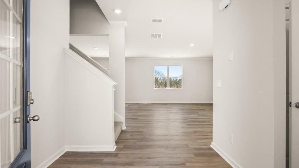 Welcome to 8177 Elkhorn Drive. This homesite features the stunning Flora plan in Fairburn, GA at our welcoming Oaks at Cedar Grove community. This plan is the perfect amount of space for any family, with 4 bedrooms and 2.5 bathrooms in 2,176 square feet. Step off the large front porch into the open foyer area, with a coat closet and powder room immediately to the right. A large great room greets you from the foyer and flows seamlessly into the kitchen. This open concept allows you to be cooking in dinner in the kitchen while still conversating with family and friends gathered in the living area. The kitchen boasts beautifully crafted cabinets, granite countertops, and all stainless-steel appliances. A quick walk up the staircase from the great room, unfolds the second floor with the laundry room immediately to the left. The primary suite is right off the laundry room, allowing easy access for laundry day. In the primary suite, homeowners can enjoy the walk-in closet, dual vanity, and separate soaking tub and walk-in shower. All 3 additional bedrooms line the other side of the second floor with a dual vanity bathroom at the end of the hallway for easy access. Does 8177 Elkhorn Drive sound like your future dream home? Then contact us at Oaks at Cedar Grove to schedule a tour of your future home in Fairburn, GA.